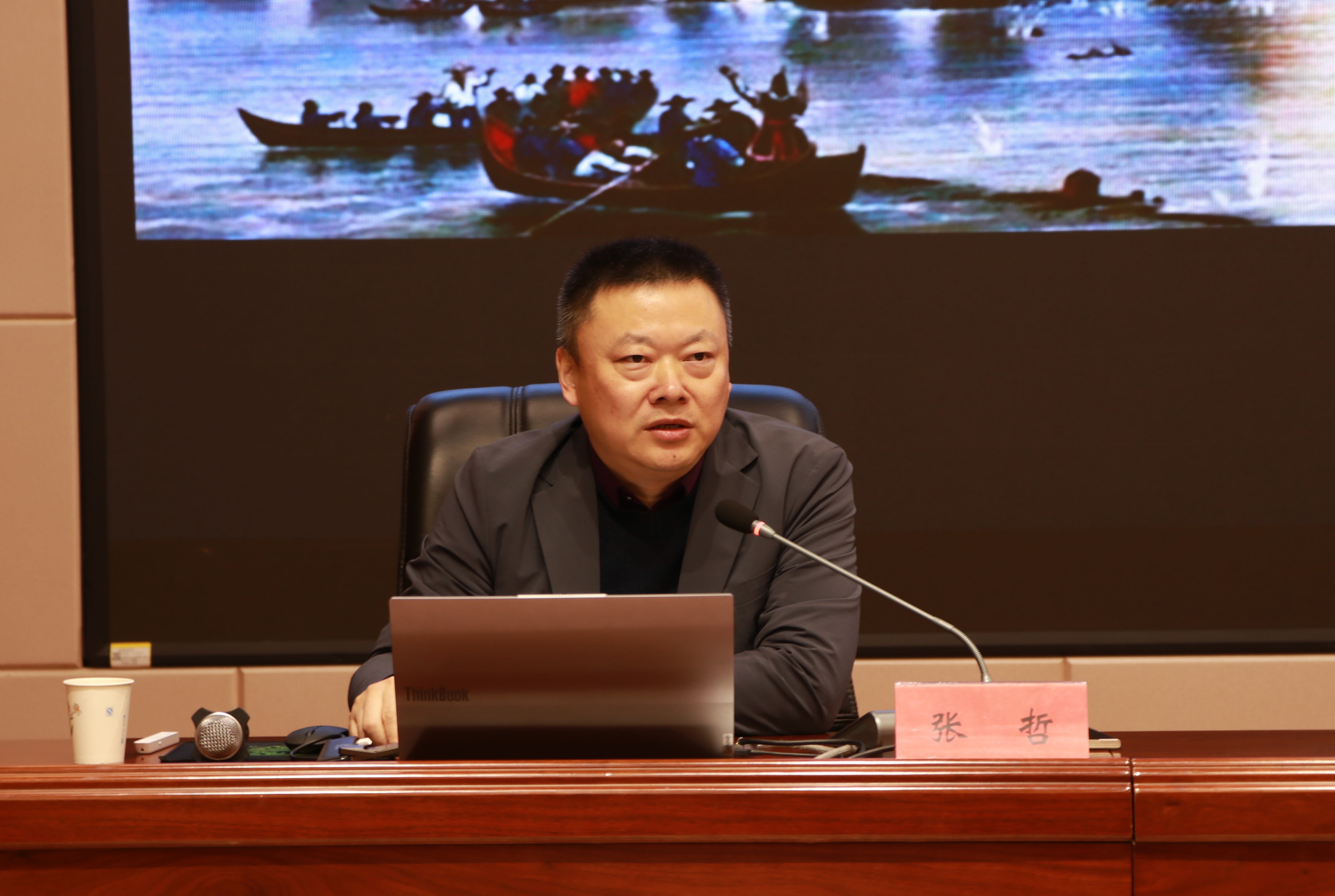 張哲教授立足理論前沿,緊扣時(shí)代脈搏,從馬克思主義中國化時(shí)代化新篇章、“兩個(gè)維護(hù)”、中國式現(xiàn)代化、守正創(chuàng)新、黨的建設(shè)、不負(fù)人民、奮力譜寫中國式現(xiàn)代化甘肅新篇章等七個(gè)方面系統(tǒng)闡釋了《習(xí)近平談治國理政》第五卷的深刻內(nèi)涵與時(shí)代價(jià)值,他結(jié)合豐富的歷史資料和現(xiàn)實(shí)案例,深入解讀了中國式現(xiàn)代化的理論體系與實(shí)踐路徑。報(bào)告邏輯嚴(yán)謹(jǐn)、內(nèi)涵豐富、語言生動(dòng),既有政治高度與理論深度,又具備實(shí)踐指導(dǎo)意義,為師生們?nèi)鏈?zhǔn)確理解《習(xí)近平談治國理政》第五卷的精神實(shí)質(zhì),把握其蘊(yùn)含的馬克思主義立場、觀點(diǎn)、方法具有重要的指導(dǎo)作用。