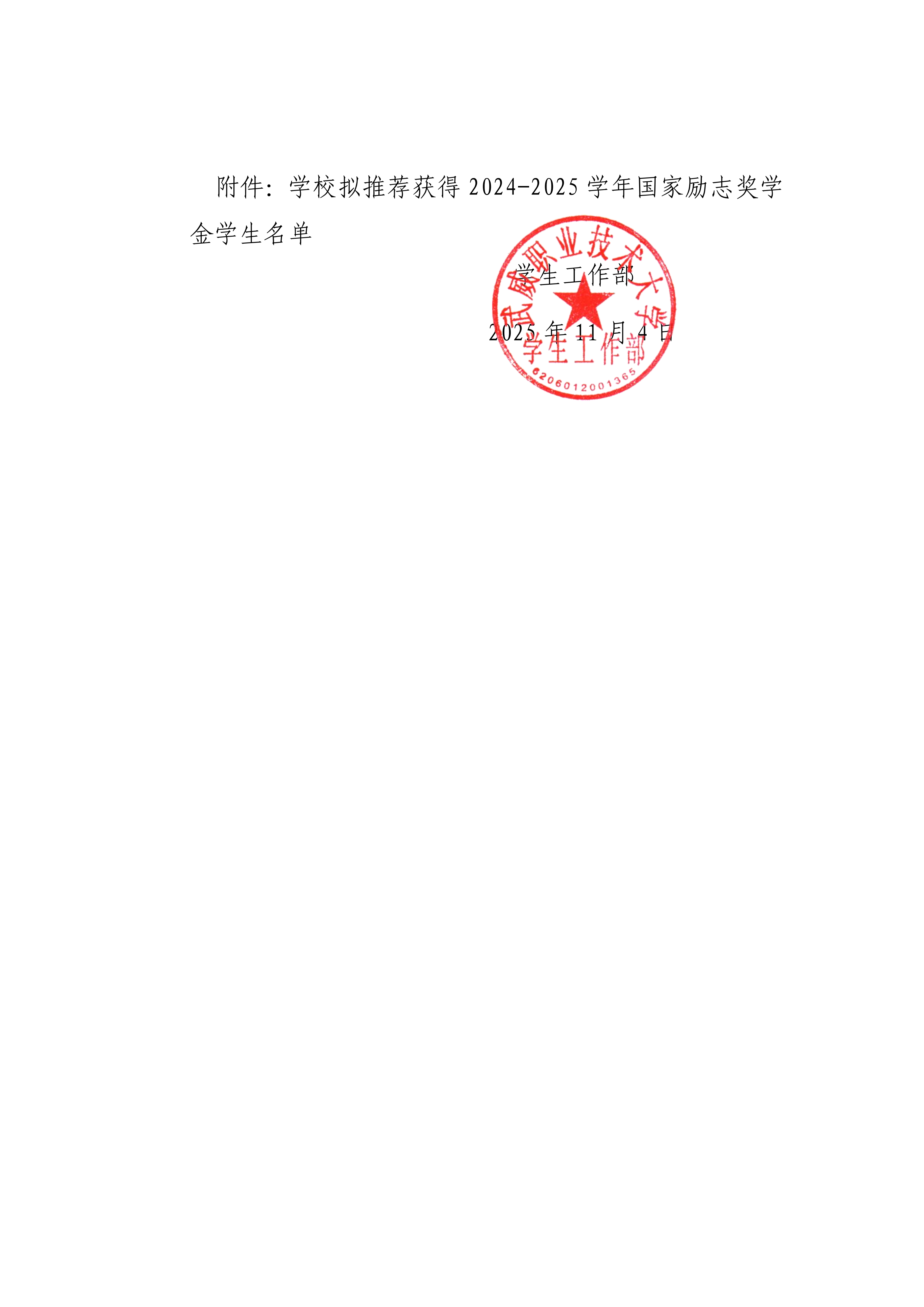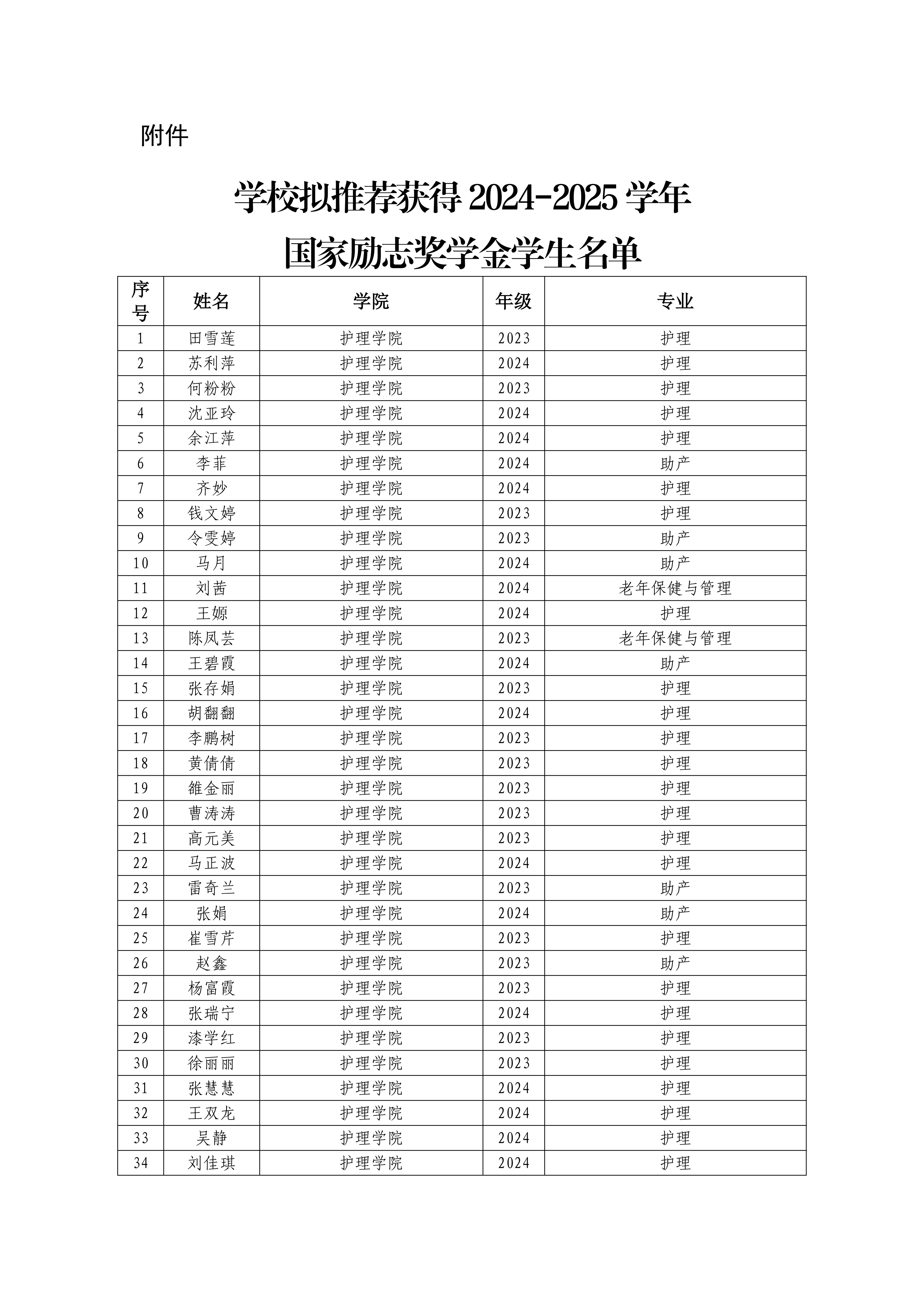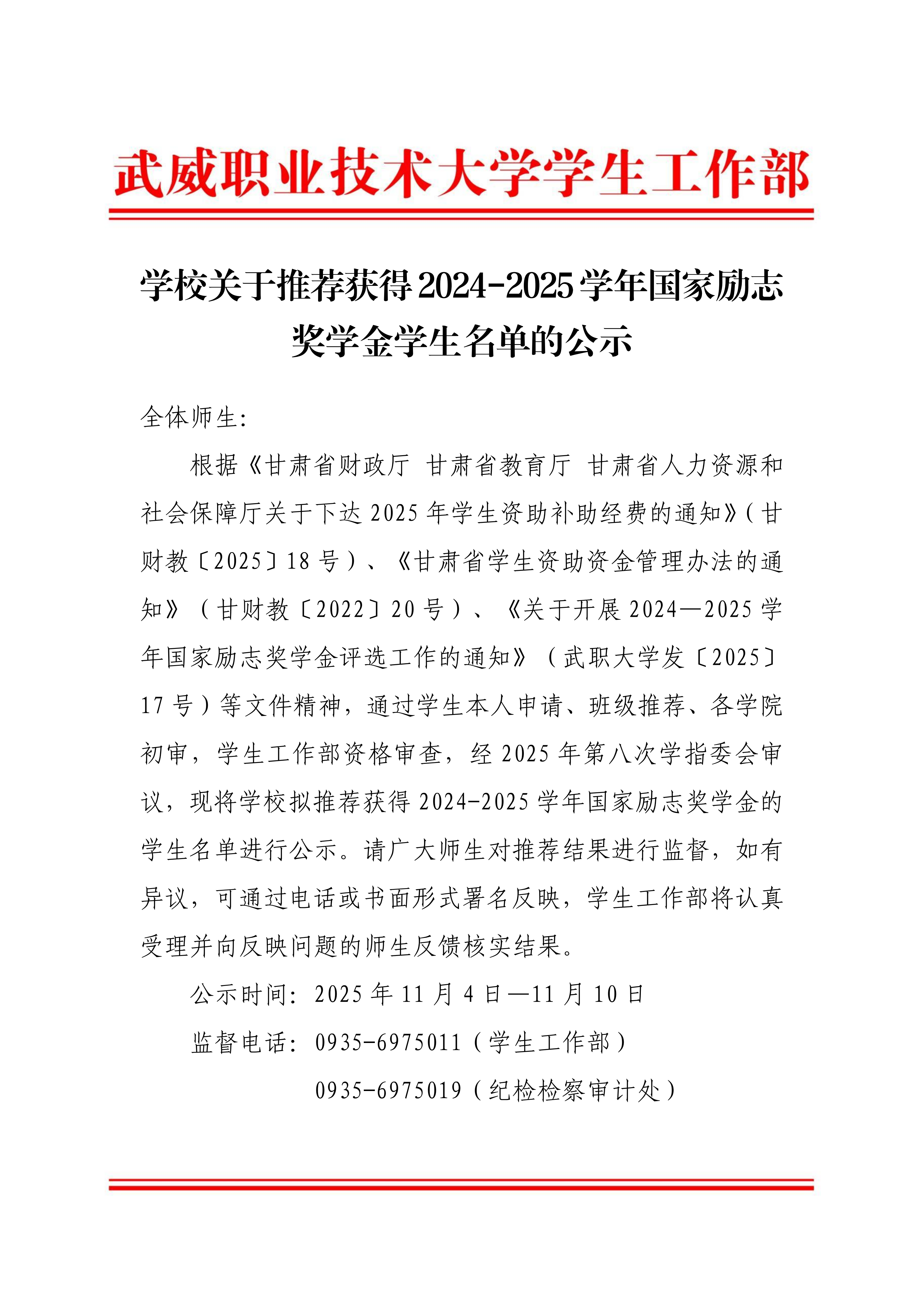 學校關于推薦獲得2024-2025學年國家勵志獎學金學生名單的公示